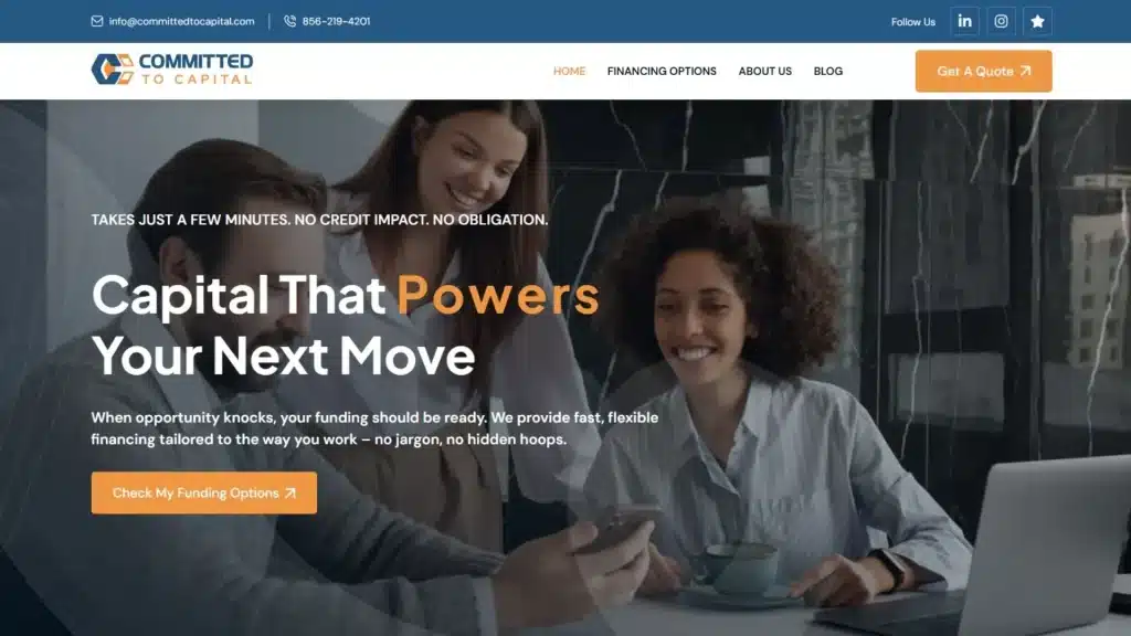 Every business gets personalized guidance to help them qualify, improve approval strength, and secure the right funding without delays. This combination of speed, transparency, and flexible programs makes Committed to Capital a trusted partner for small and mid-sized businesses looking to unlock cash flow, manage growth, and stay competitive.